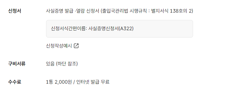 - 서비스 검색: 검색창에 "출입국사실증명서"를 입력하고 검색합니다. 검색 결과에서 "출입국에 관한 사실증명" 서비스를 선택합니다.
