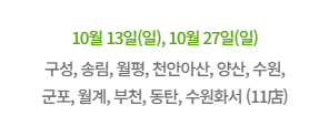 1. 10월 13일(일)과 10월 27일(일) 휴무 매장