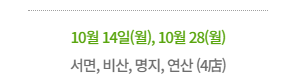 3. 10월 14일(월)과 10월 28일(월) 휴무 매장
