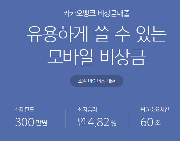 - 카카오뱅크 비상금대출: 무직자도 간편하게 최대 300만 원 대출 가능.