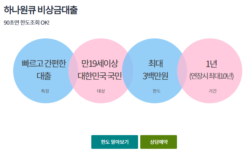 하나원큐 비상금대출의 주요 특징은 다음과 같습니다.