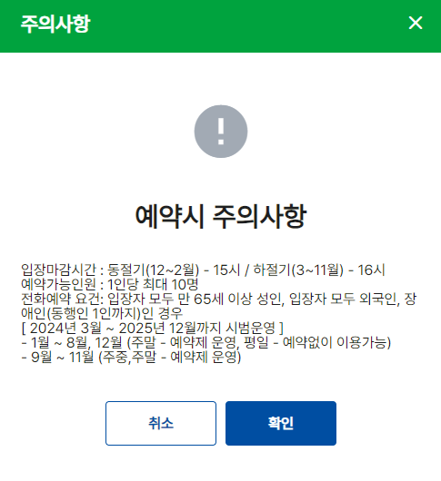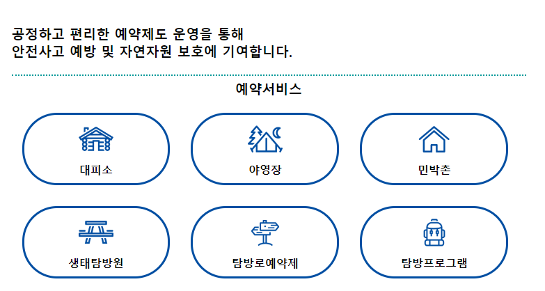 - 예약은 국립공원공단 예약 시스템을 통해 가능합니다.