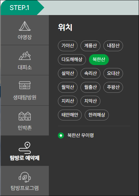 북한산 우이령길 예약하기 - 국립공원공단 예약시스템