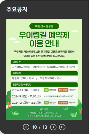- 북한산 우이령길은 예약제로 운영되며 사전 예약이 필수입니다.