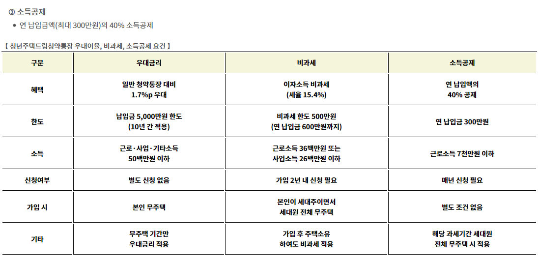 청년 주택드림 청약통장의 주요 혜택