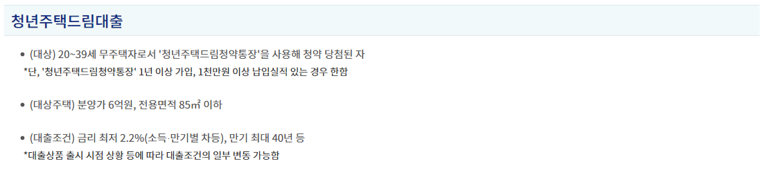 2. 청년 주택드림 대출 지원